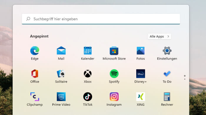 - Das Startmenü ist aufgeräumt und ansprechend.