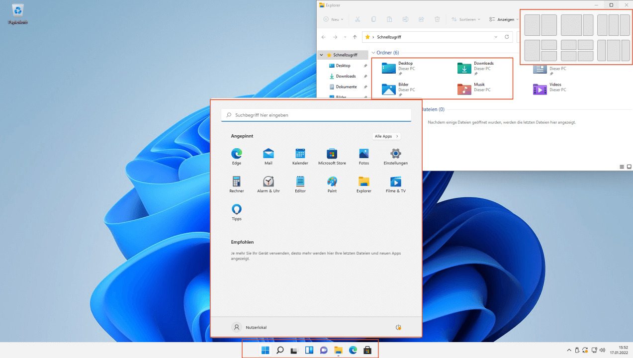 Weitere Neuerungen in Windows 11 sind neben der höheren Geschwindigkeit von optischer Natur: