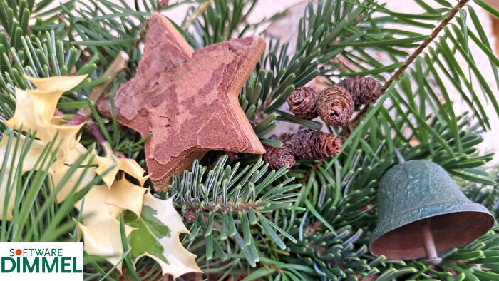 Frohe Weihnachten und einen guten Rutsch ins Jahr 2025! (Bildnachweis: Startbild: www.pixabay.com, Seitenbild: Dimmel-Software)