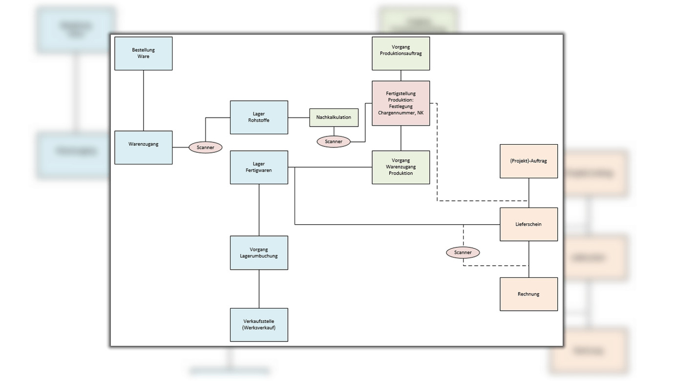 Die Produktionsleitung erfasst die Chargen nach einem definierten Schlüssel. Durch die nachfolgende automatische und einheitliche Erfassung der Chargennummer in den verschiedenen Vorgangsarten des Produktionsprozesses von Produktionsauftrag, Lieferschein, Rechnung bis hin zu Lagerumbuchungen ist die Verfolgbarkeit gewährleistet.