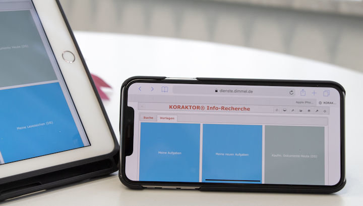Die Info-Recherche Web-App ist eine nützliche Ergänzung für KORAKTOR®, um möglichst unkompliziert von überall auf wichtige Firmendaten zugreifen zu können. So kann man Kundendaten über jeden mobilen Browser auf einem Smartphone oder Tablet einsehen.