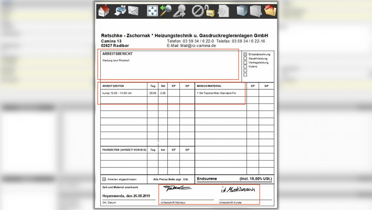 In einer Testphase prüfte man die Möglichkeiten der mobilen Datenerfassung für Serviceleistungen und sammelte Erfahrungen bei der Datenübertragung. Anschließend ging die Retschke-Zschornak GmbH dazu über, die Service-Monteure nach und nach mit der mobilen Erfassungstechnik auszustatten. Nicht nur bei den Serviceleistungen vor Ort, sondern auch im Büro kam es durch die Einführung der mobilen Servicelösung zu einem Rationalisierungsschub. Die automatische Bereitstellung von Dokumenten und Daten entsprechend der geltenden Wartungsvorschriften erleichtert die Vorbereitungsarbeiten im Büro. Des Weiteren entfällt das Abtippen der Serviceberichte. Der Kunde kann den Arbeitszettel direkt auf dem mobilen Gerät unterschreiben, was eine schnelle Rechnungslegung ermöglicht und damit die Liquidität sichert.