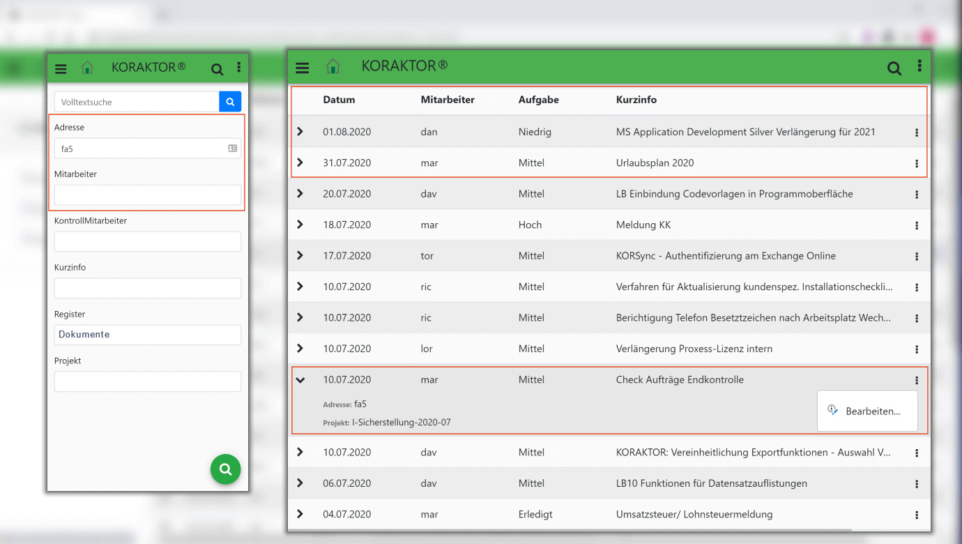 - Verwaltung von Unternehmensdaten in KORAKTOR® von unterwegs