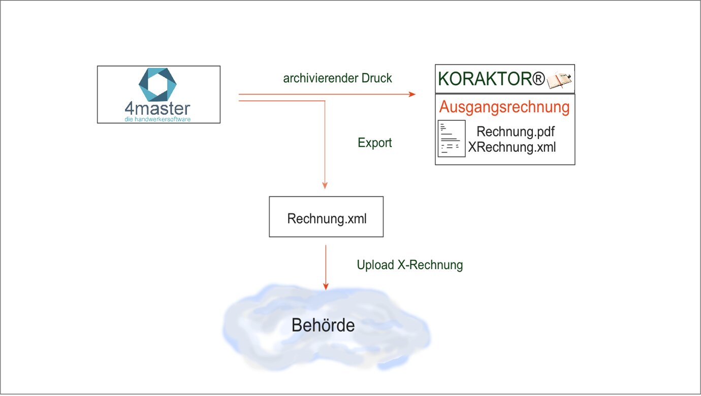 Nach dem Update auf die aktuelle 4Master®-Version ist nun auch die Erzeugung der von Behörden geforderten XRechnung möglich. Für die Archivierung der XRechnungen war keine zusätzliche Software notwendig. Eine Anpassung in KORAKTOR® garantiert jetzt das Speichern der XRechnung im XML-Format zusätzlich zur PDF-Datei. Beide Dokumente sind in einem Datensatz unveränderbar und damit GoBD-konform archiviert. Jederzeit hat man über KORAKTOR® schnellen Zugriff auf die Rechnungen. Dadurch ist ein Versand per PDF-Datei bzw. Upload als XML wiederholt möglich.