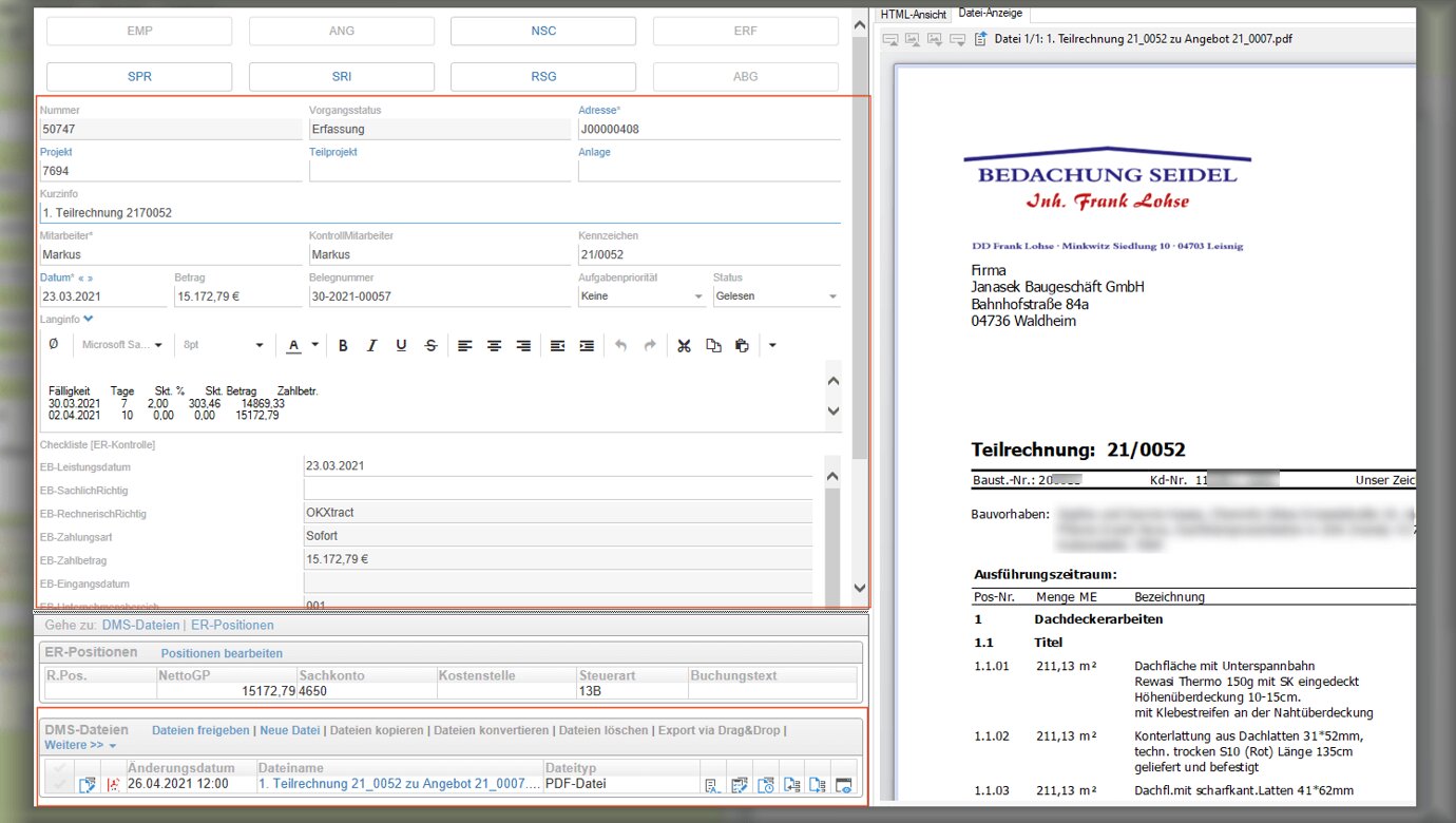 Die Janasek Baugeschäft GmbH hat für die digitale Belegerfassung Proxess-Xtract eingeführt. Eingangsrechnungen werden dadurch automatisch eingelesen und in KORAKTOR® verarbeitet. Die Übergabe der Daten an die BRZ-Bausoftware erfolgt mit Hilfe einer individuellen KORAKTOR®-Schnittstelle.