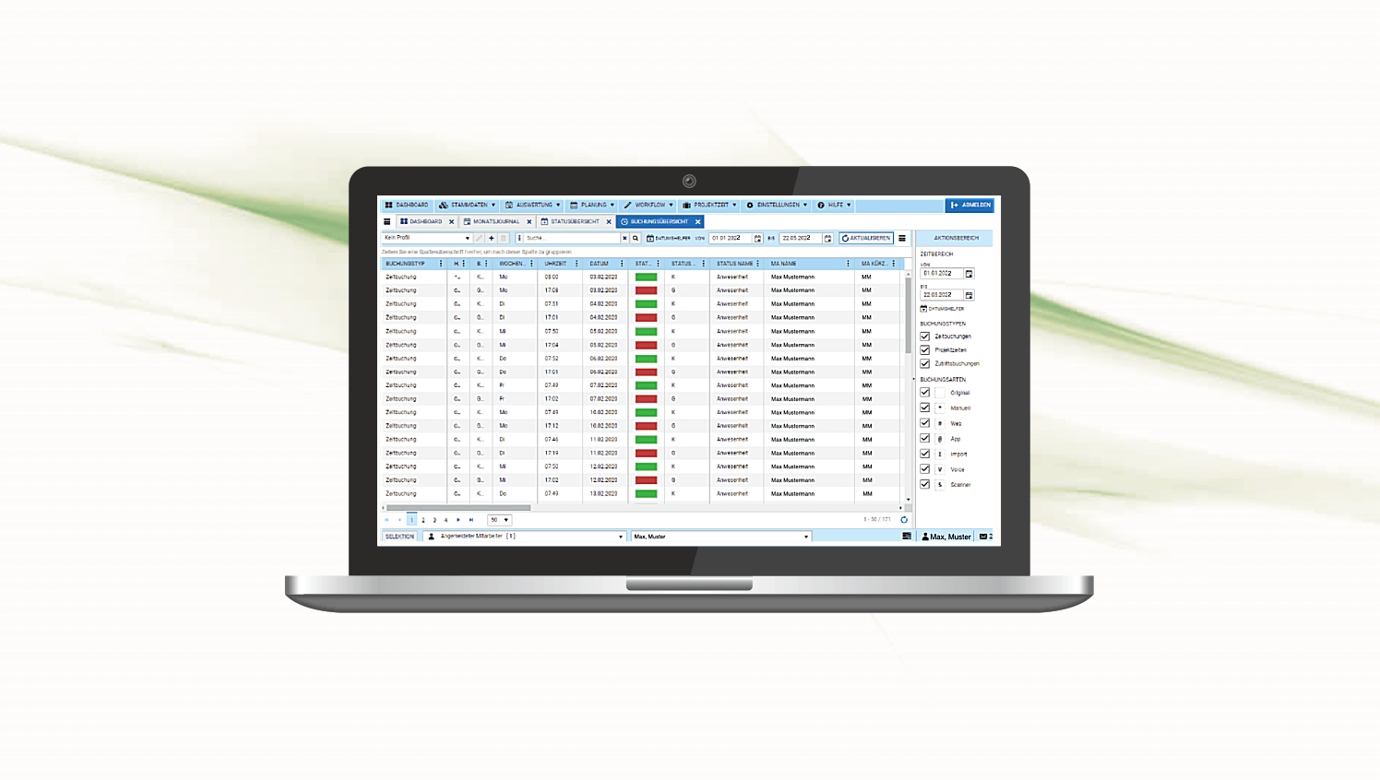 Journale & Analysen wie Tages-, Monats- oder Jahresjournal geben detaillierten Einblick und stellen Arbeitszeiten und Abwesenheiten in Echtzeit übersichtlich dar. Sämtliche Berichte und Statistiken können im PDF-Format oder in Excel-Tabellen z.B. für die Personalabteilung zur Verfügung gestellt werden.
