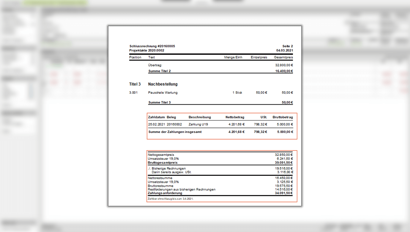 Abschlags- oder auch Zwischenrechnungen sind bei jeder Ausgangsrechnung genau aufgeführt.