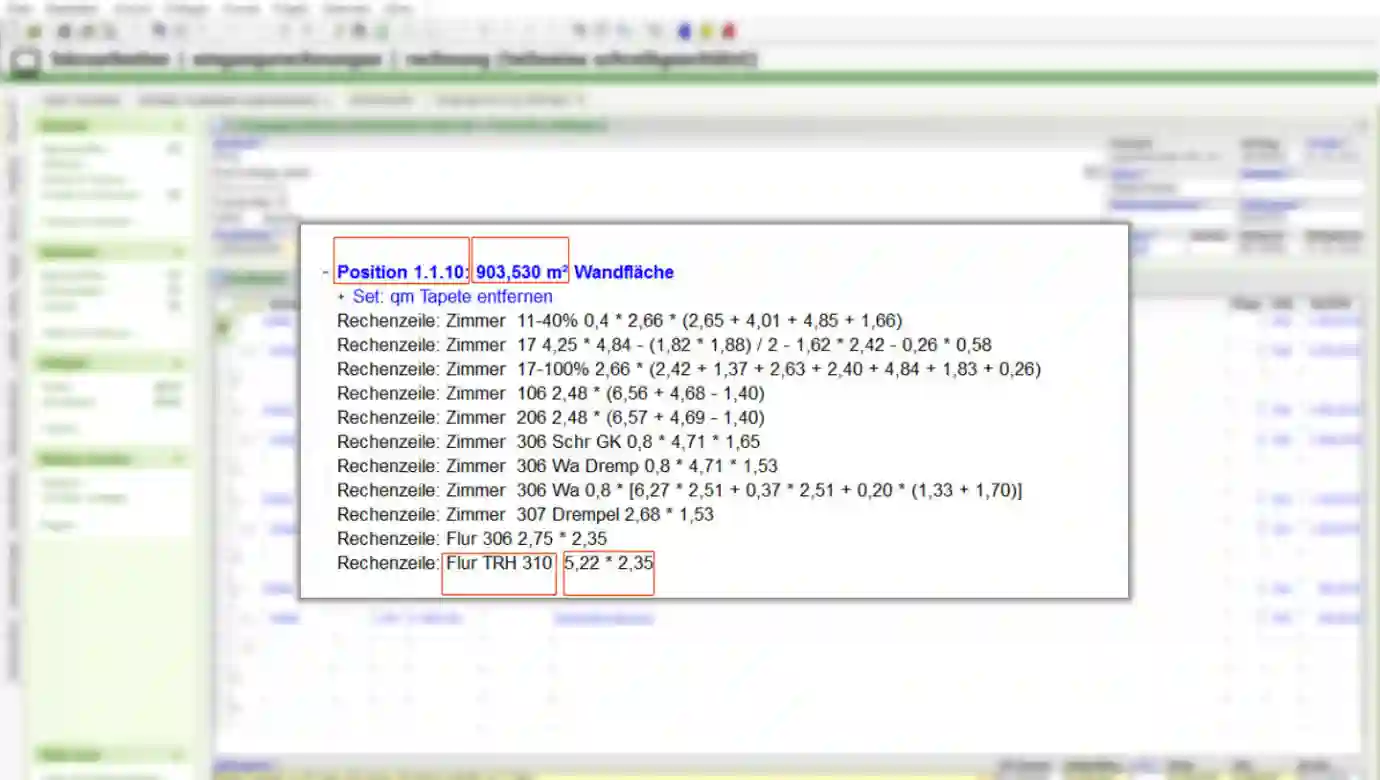 - Übernahme der Massen "auf Knopfdruck" in die jeweilige Leistungsposition