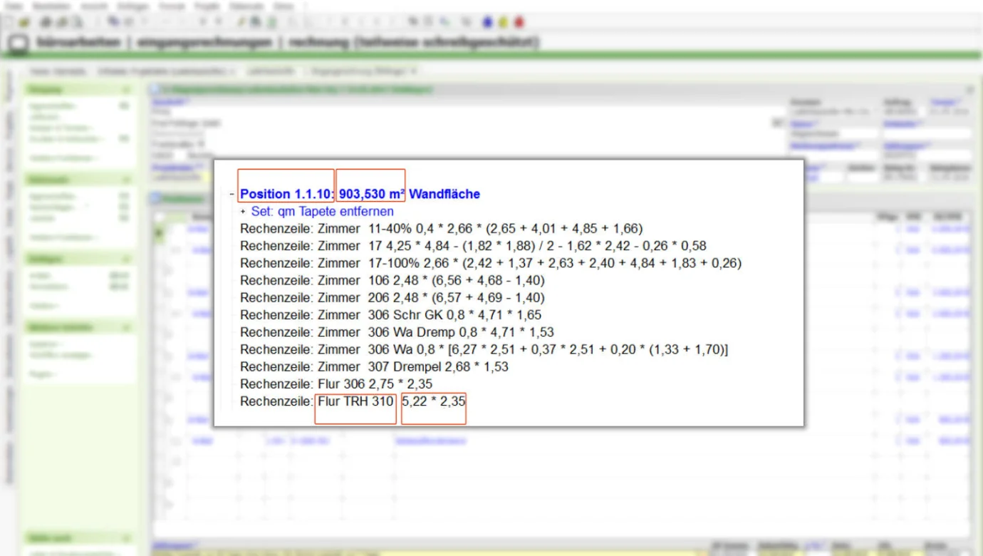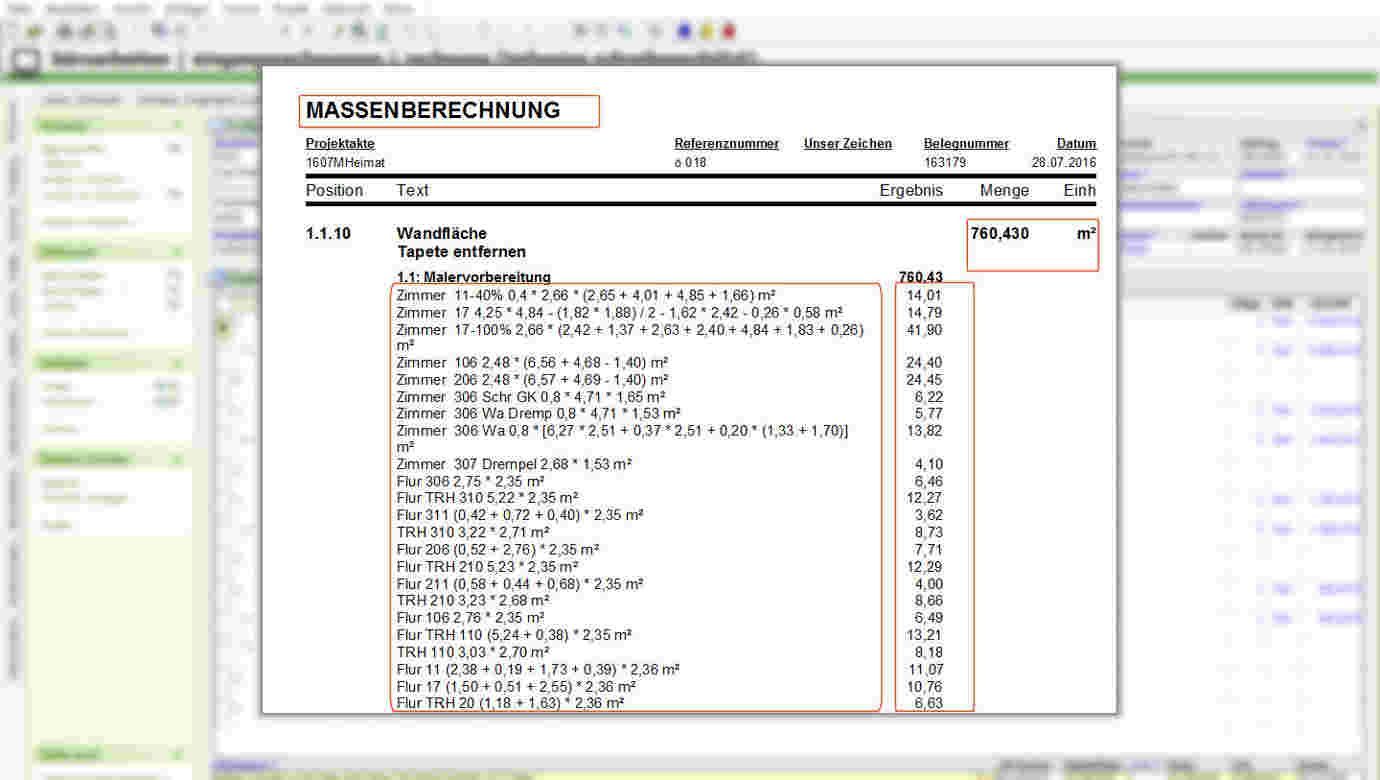 Mit der in MOS'aik enthaltenen Unterstützung zur Aufmaßberechnung bleiben auch komplexe Aufmaße bei Aufträgen mit vielen Teilabrechnungen nachvollziehbar. Dazu werden den einzelnen Positionen die detaillierten Massen und Angaben zum Raum zugeordnet. Die eigentliche Aufmaßberechnung übernimmt MOS'aik: