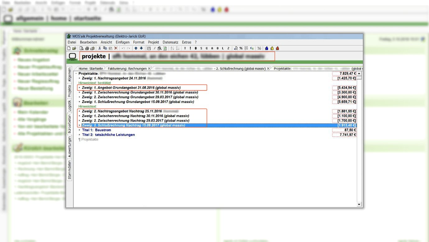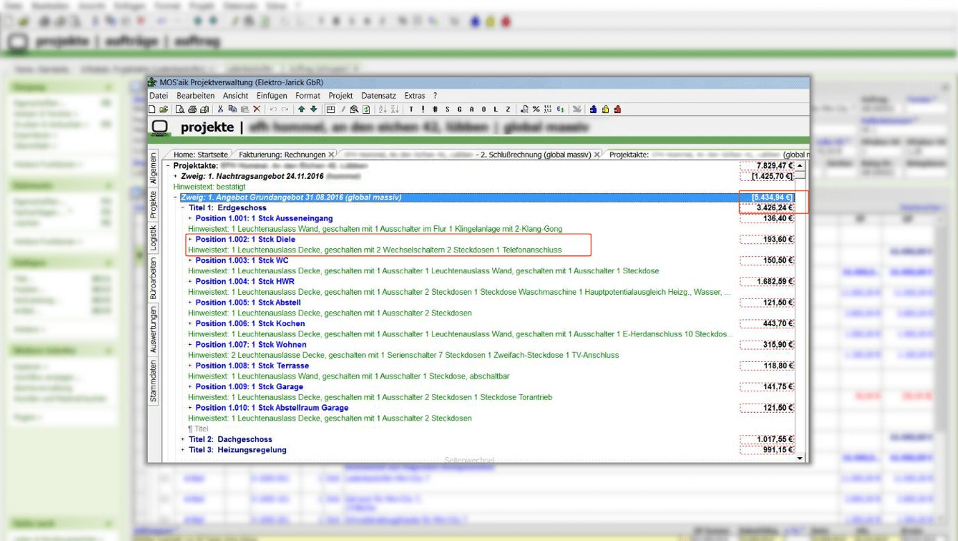 Die ERP-Mittelstandssoftware MOS'aik lässt sich ohne viel Aufwand den betrieblichen Abläufen für die Auftragsbearbeitung im Elektrohandwerk anpassen. Durch die Datenübernahme aus Lieferantenkatalogen wird die Erstellung der Projektunterlagen enorm erleichtert und die Daten sind stets aktuell.