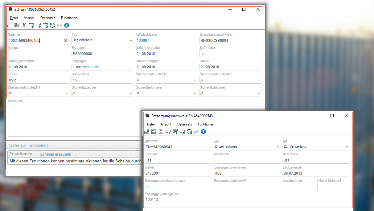 Erfassung der Entsorgungsdaten zur Datenübermittlung