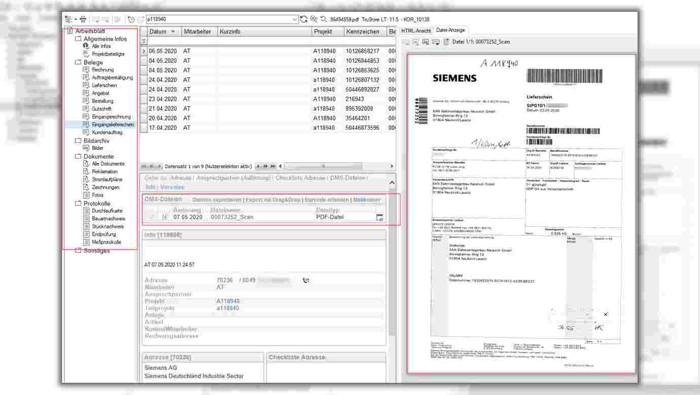 - Zugriff auf alle Dokumente (E-Mails, Angebote, Aufträge, Rechnungen und Dokumentationen)